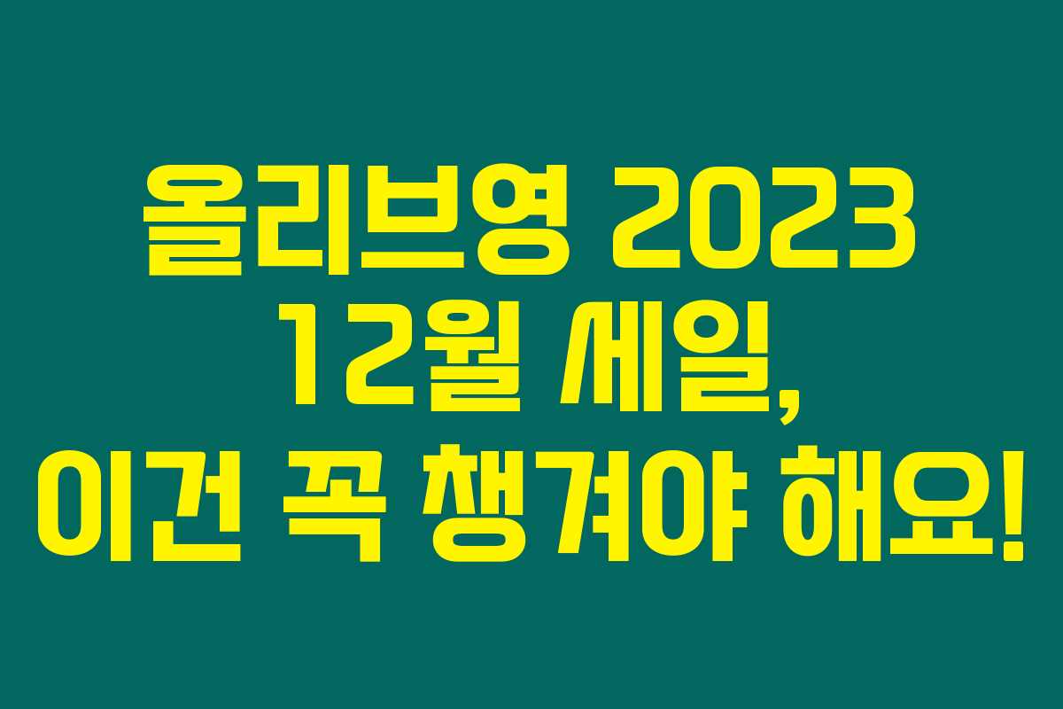 올리브영의 2023 12월 세일, 할인 혜택과 다양한 이벤트. 가격이 저렴해지면 더 많은 분들이 원하는 제품을 구매할 수 있어요. 더 이상 망설이지 마시고 올리브영 세일을 통해 현명한 쇼핑 하시길 바라요. 필요한 제품을 꼭 챙기세요!