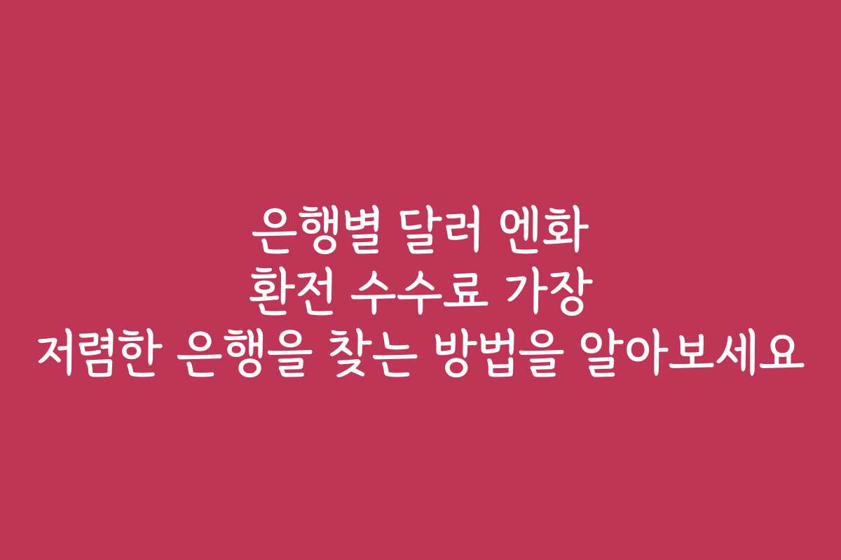 은행별 달러 엔화 환전 수수료 가장 저렴한 은행을 찾는 방법을 알아보세요