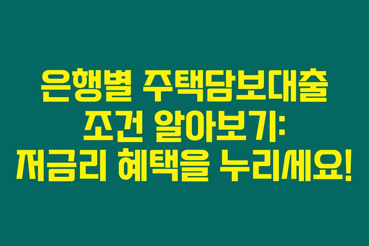 제가 알아본 바로는, 주택담보대출은 내 집을 담보로 필요한 자금을 대출받는 큰 금융 거래입니다. 특히 금리가 낮고 조건이 유리한 상품을 찾는 것이 중요해요. 아래를 읽어보시면, 다양한 은행의 주택담보대출 상품과 조건, 금리, 한도에 대해 상세하게 설명해드릴게요.
