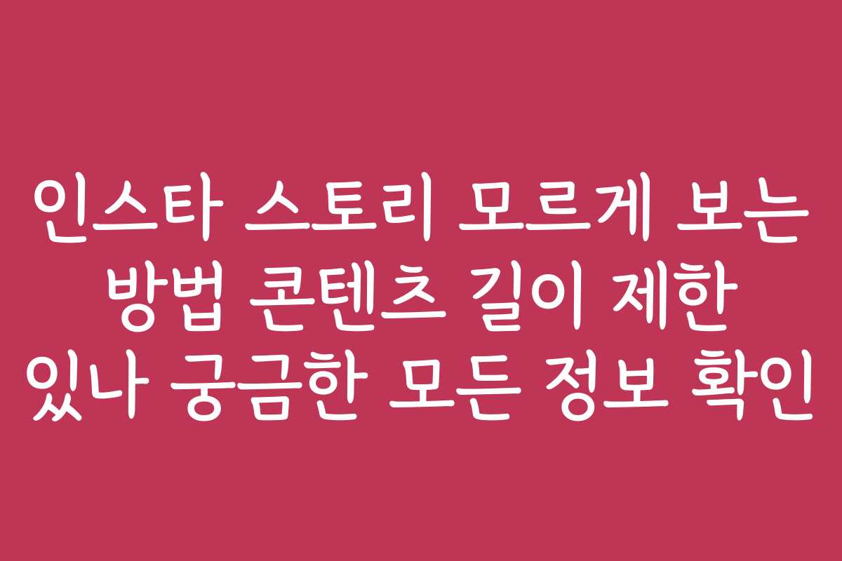 인스타 스토리 모르게 보는 방법 콘텐츠 길이 제한 있나 궁금한 모든 정보 확인