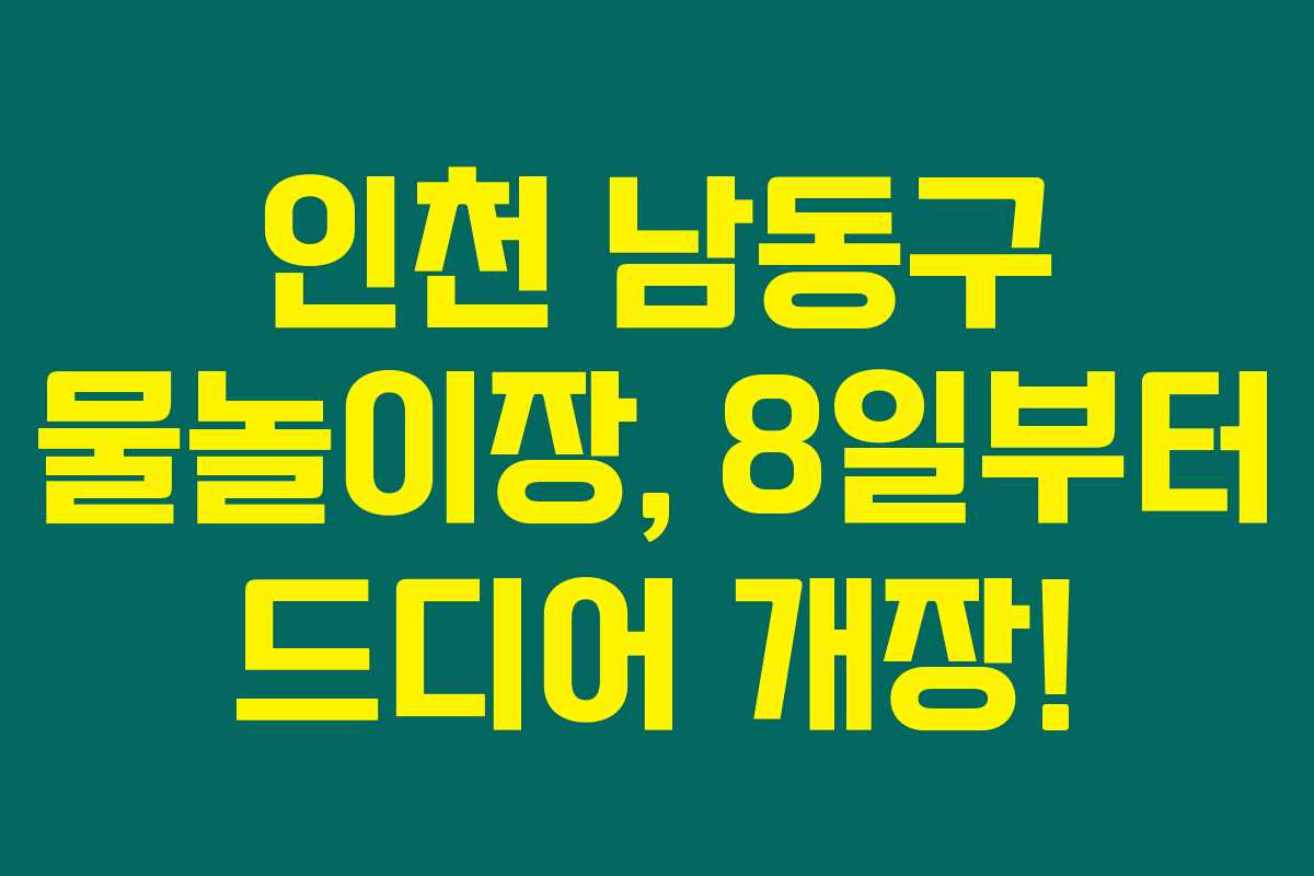올해 여름은 인천 남동구 물놀이장에서 가족과 함께 즐거운 시간을 보내세요. 물놀이장은 무료로 개방되니 많은 분들이 오셔서 즐거운 추억을 쌓으시길 바랍니다!