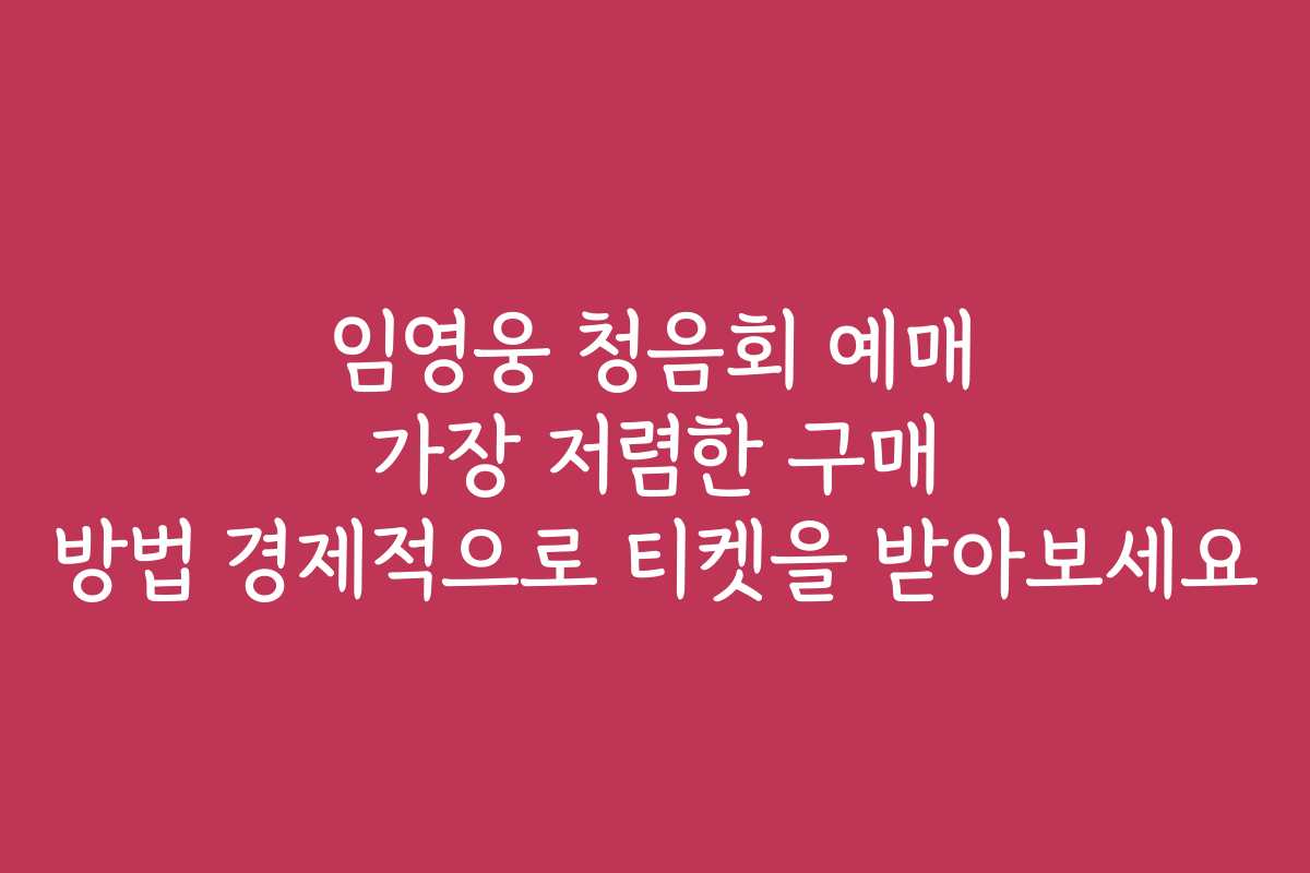 핵심 키워드: 임영웅 청음회, 청음회 예매, 저렴하게 티켓 구매, 경제적인 티켓 구매 방법, 온라인 예매, 할인 쿠폰, 무료 예매 이벤트, 준비물 체크리스트, 서비스 비교, FAQ, 고객 지원