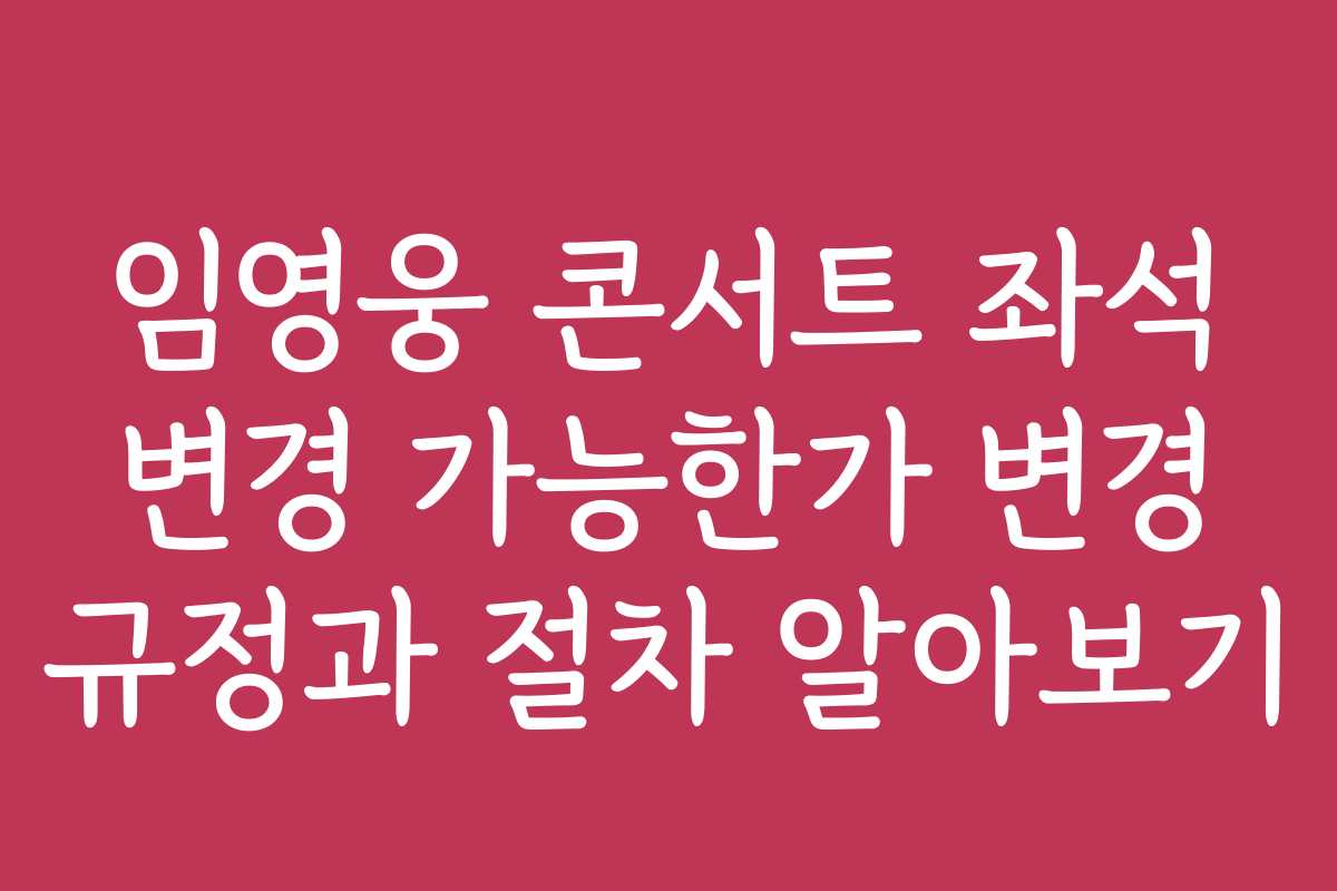 임영웅, 콘서트, 좌석 변경, 관람 경험, 좌석 변경 정책, 절차, 고객센터, 예매 정보, 공연 일정, 트러블슈팅, 자주 묻는 질문