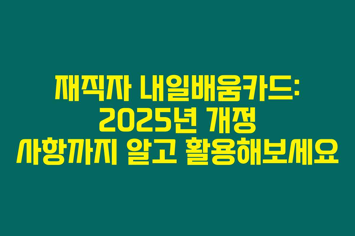 제가 직접 경험해본 결과, 직장 생활에서 자기 개발이 얼마나 중요한지 많이 느끼게 되었어요. 이를 위해 많은 분들이 관심을 가지는 게 바로 재직자 내일배움카드입니다. 이 카드는 고용노동부에서 지원하는 제도로, 다양한 교육 기회를 제공해주어 재직자가 직무 능력을 향상시킬 수 있도록 도와줍니다. 아래를 읽어보시면 내일배움카드 발급 조건과 신청 방법부터 2025년 개정 사항까지 상세히 안내드리겠습니다.