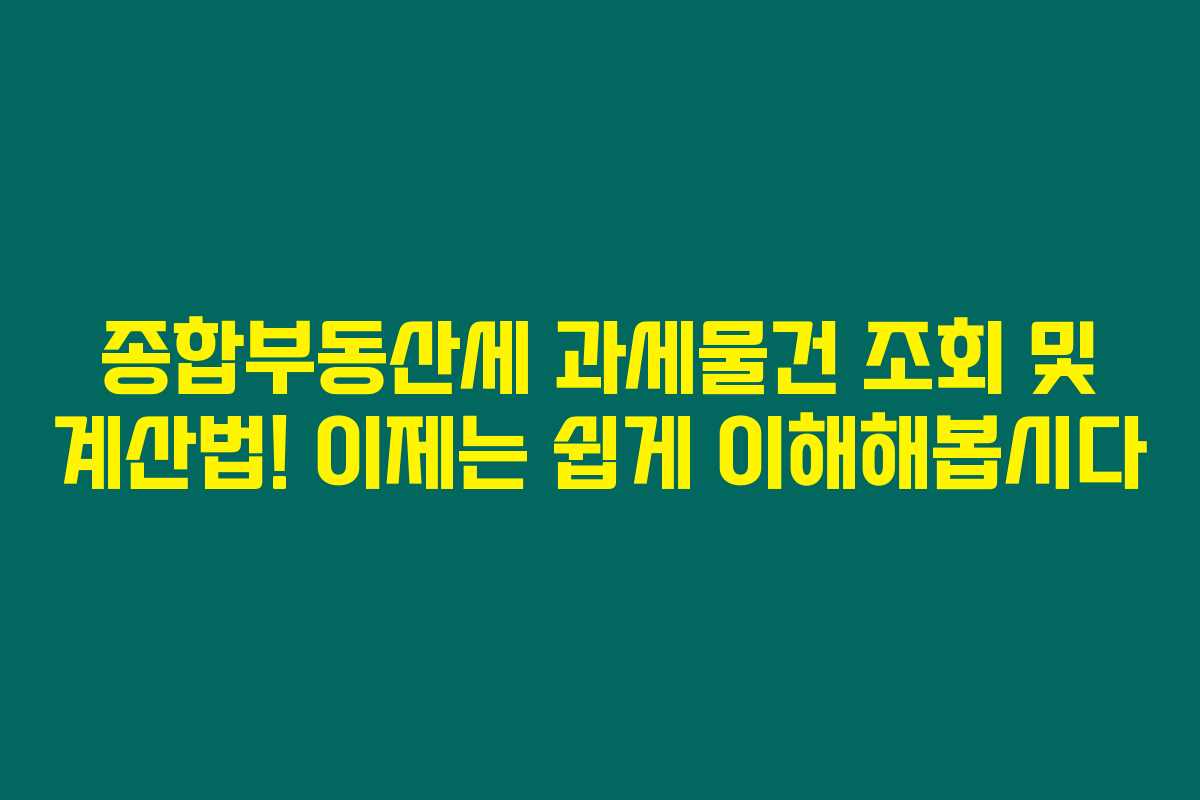 제가 직접 경험해본 결과로는, 종합부동산세에 대한 이해는 매년 불가피한 세금 문제를 해결하는 데 큰 도움이 됩니다. 특히, 과세물건 조회와 계산법에 대한 정확한 지식이 있다면 세금 고지서가 날아왔을 때 당황하지 않고 효율적으로 대처할 수 있지요. 아래를 읽어보시면 종합부동산세의 기초, 과세물건 조회 방법, 계산법을 쉽게 정리해드리겠습니다.