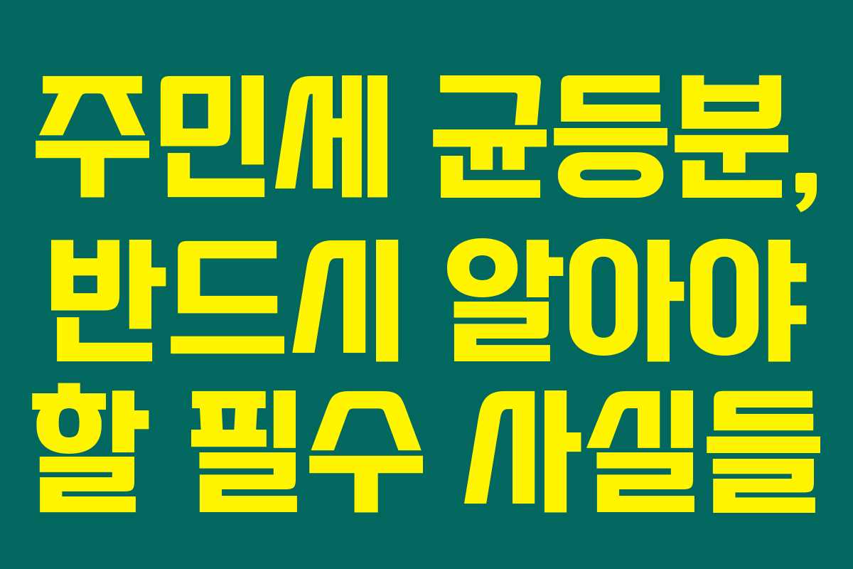 주민세 균등분에 대해 잘 알고 계신가요? 이 세금이 무엇인지 모르고 계신다면 여러분은 큰 손해를 보고 있을지도 몰라요. 주민세 균등분은 지방세로서 매년 일정한 금액이 부과되기 때문에 그 기초와 납부 방법을 정확히 아는 것이 중요해요. 아래를 읽어보시면 주민세 균등분의 개념과 그 필요성을 상세히 이해할 수 있을 거예요.