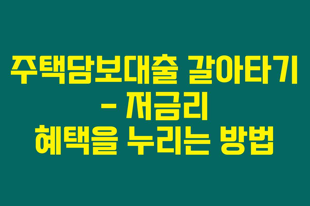 주택담보대출을 갈아타기하는 방법과 조건을 통해 여러분도 저금리 혜택을 누리실 수 있습니다. 이러한 제도를 잘 활용하여 재정적 안정성을 높여보세요.