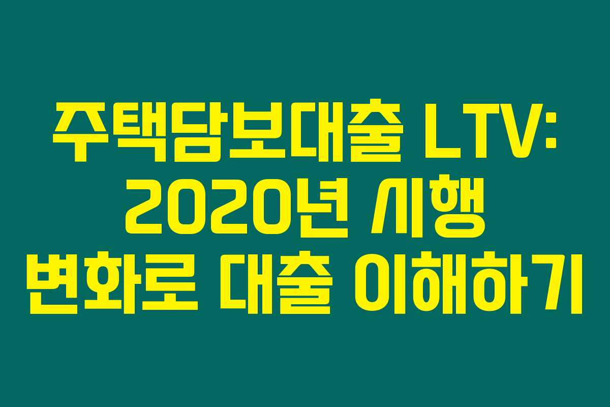 주택담보대출 LTV: 2020년 시행 변화로 대출 이해하기