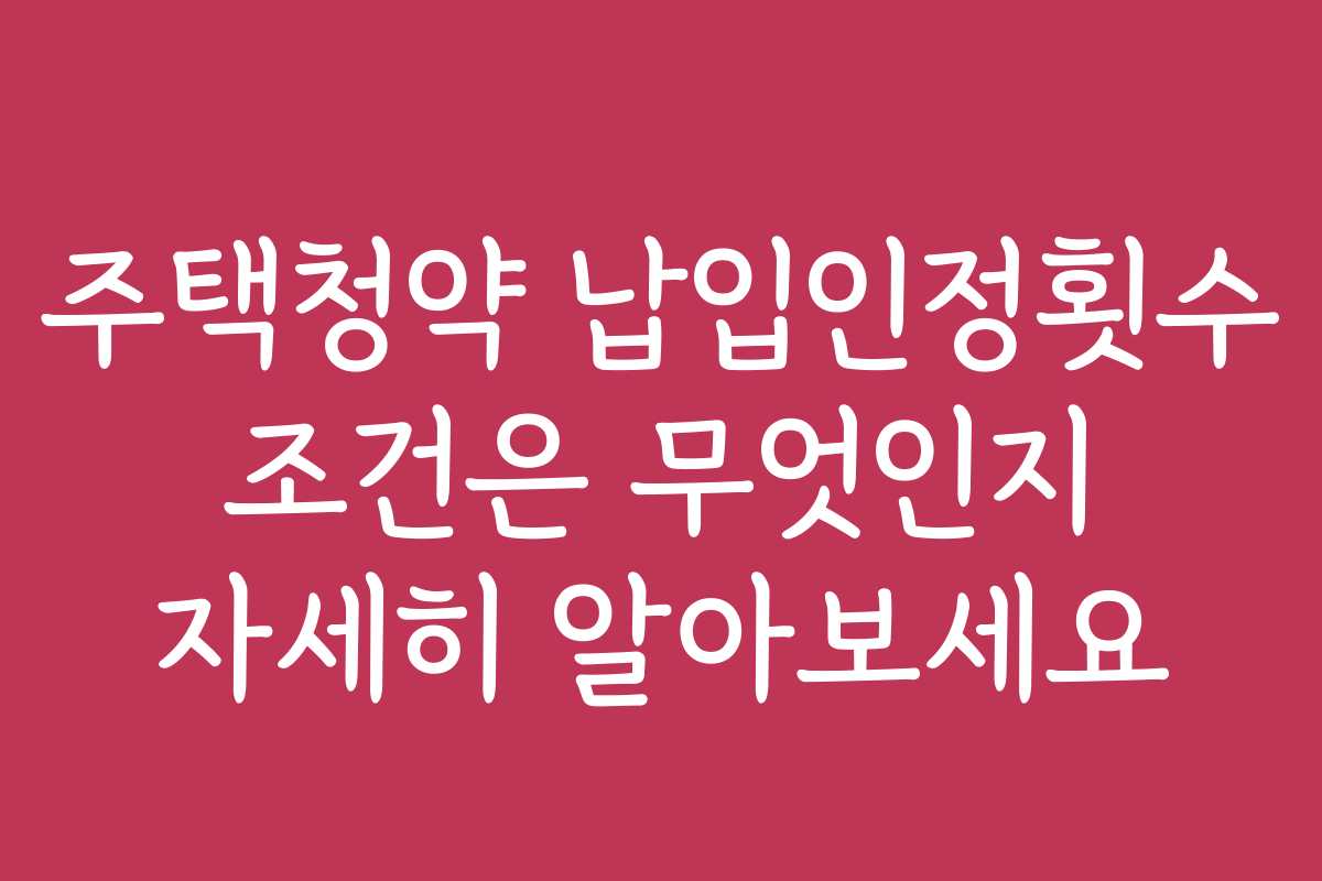 주택청약, 납입인정횟수, 청약가입조건, 주택청약준비, 내집마련, 청약상품비교, 청약경쟁, 청약전략, 주택자금관리, 청약FAQ, 납입횟수증가