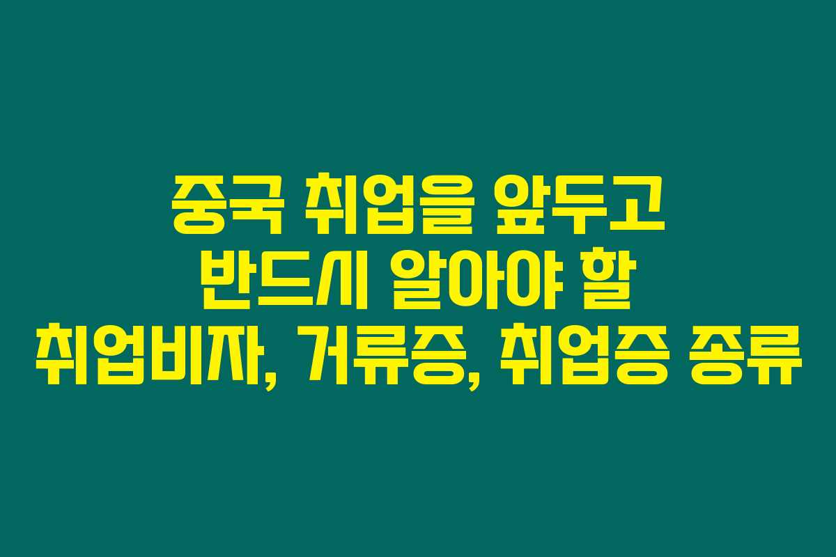 중국에서 취업하려면 반드시 알아야 할 핵심 요소가 있어요. 바로 취업비자, 거류증, 그리고 취업증 종류인데요. 이 글을 읽어보시면 중국에서의 취업을 위한 준비를 조금 더 쉽게 할 수 있을 거예요. 궁금한 부분을 명확히 정리해드리겠습니다.
