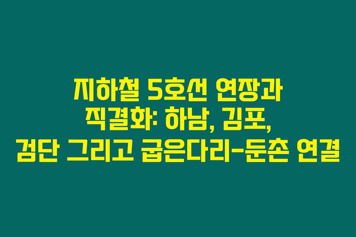제가 직접 리서치해본 결과로는 지하철 5호선의 연장 및 직결화에 관한 다양한 정보들이 시민들의 교통 편의성을 어떻게 변화시키는지에 대해 요약할 수 있답니다. 이 글에서는 하남, 김포, 검단 연장과 굽은다리와 둔촌의 직결화에 관련된 내용을 정리해 보았어요. 아래를 읽어보시면 교통 변화의 흐름과 그 중요성을 알 수 있을 거예요.