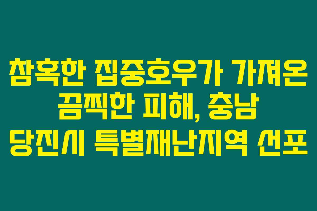 충남 당진시가 집중호우로 인해 특별재난지역으로 지정되었습니다. 이로 인해 많은 주민이 고통을 받고 있습니다. 이 글을 통해 이번 사태의 심각성을 조명하고, 향후 대책에 대해 논의해 보겠습니다. 아래를 읽어보시면 자연재해 대응의 중요성에 대해 알게 될 거예요.