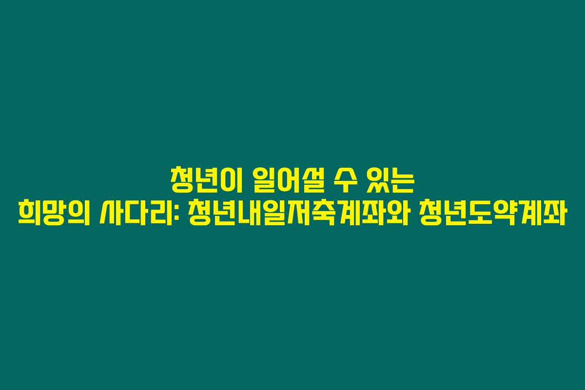 제가 직접 경험해본 결과로는 청년들이 미래를 준비하는 데 있어 꼭 알아야 할 두 가지 제도, 청년내일저축계좌와 청년도약계좌에 대해 상세히 알려드립니다. 이들 제도는 청년들에게 자산을 쌓을 수 있는 좋은 기회를 제공합니다. 아래를 읽어보시면 많은 도움이 될 거예요.