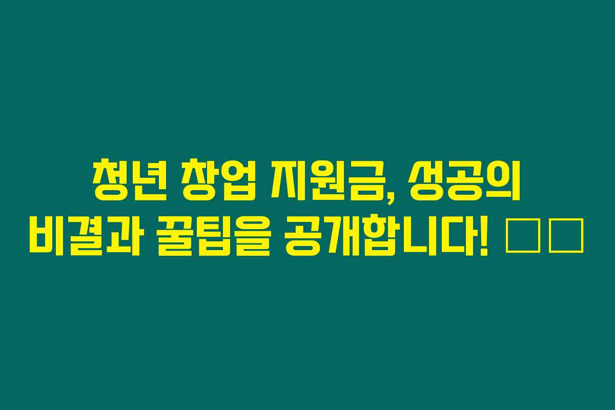 청년 창업 지원금, 성공의 비결과 꿀팁을 공개합니다! 🚀💰