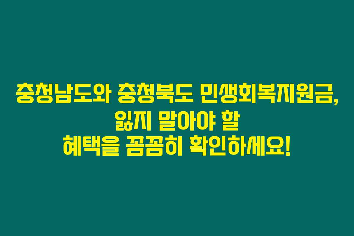 충청남도와 충청북도 주민이라면 민생회복지원금을 놓치지 말고 다양한 복지 지원 제도를 잘 활용하시길 바랍니다. 제가 직접 리서치한 결과로는, 여러 혜택을 함께 누리면 더 나은 생활을 할 수 있도록 도와줍니다. 앞으로도 지속적인 정책 변경 사항을 체크하며, 여러분에게 꼭 필요한 정보들을 프리미엄하게 받아보세요.