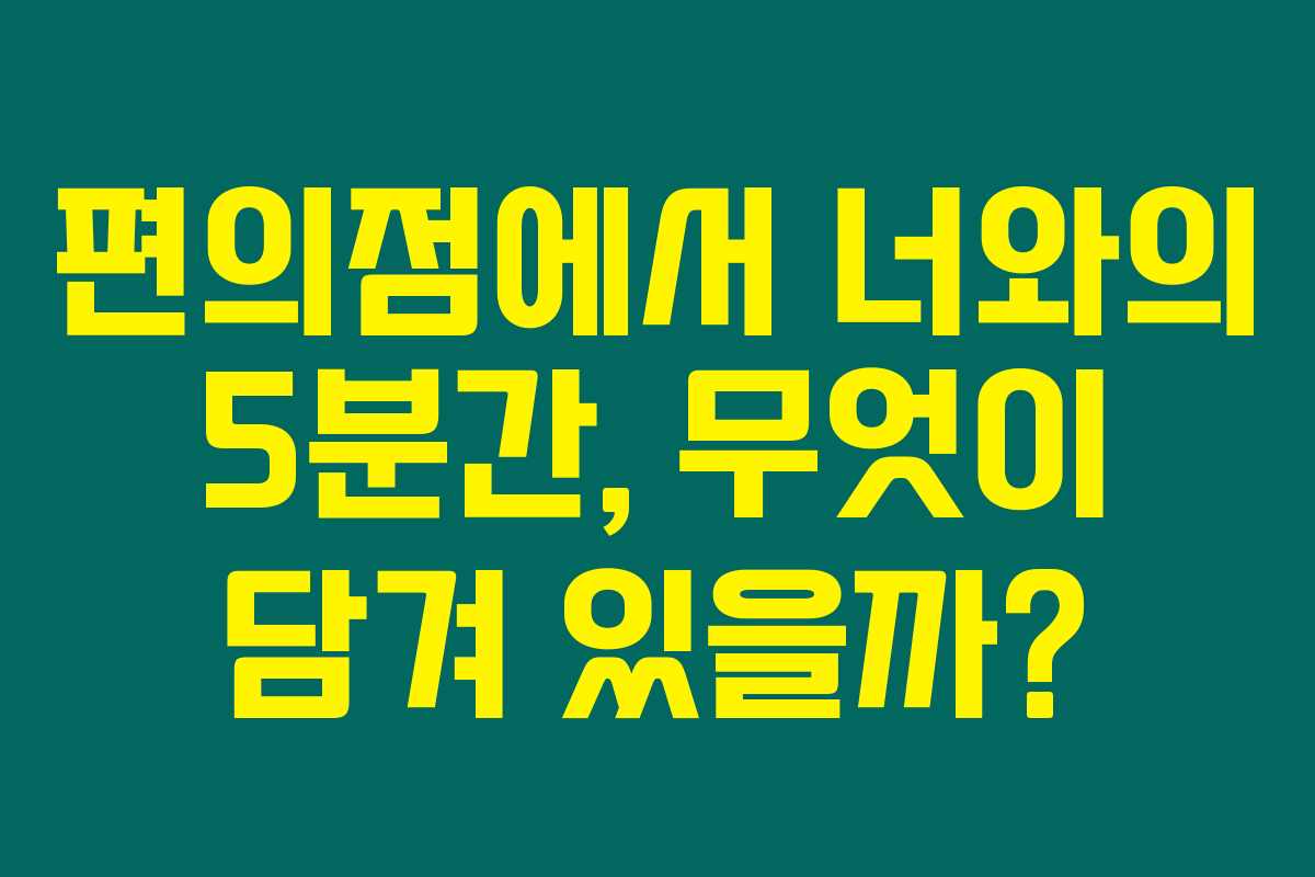 편의점에서의 5분은 단순한 시간에 그치지 않고, 크고 작은 이야기들이 담겨 있는 중요한 장소가 됩니다. 그 한 순간에도 우리는 서로 연결되어 있으며, 때로는 소중한 경험이 됩니다. 다음에 편의점에 가실 때, 그 5분을 더 특별하게 느껴보세요.