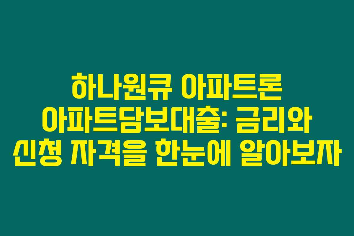 하나원큐 아파트론 아파트담보대출: 금리와 신청 자격을 한눈에 알아보자