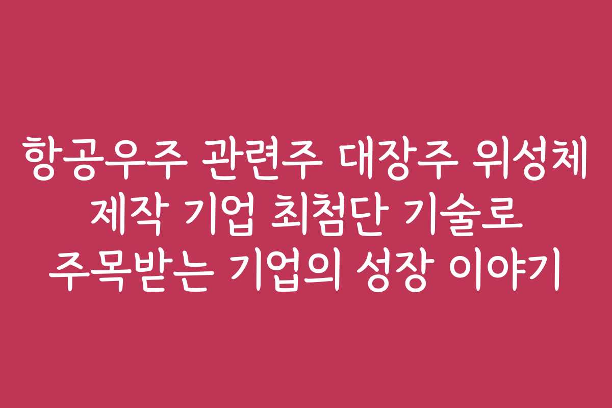항공우주 관련주 대장주 위성체 제작 기업 최첨단 기술로 주목받는 기업의 성장 이야기