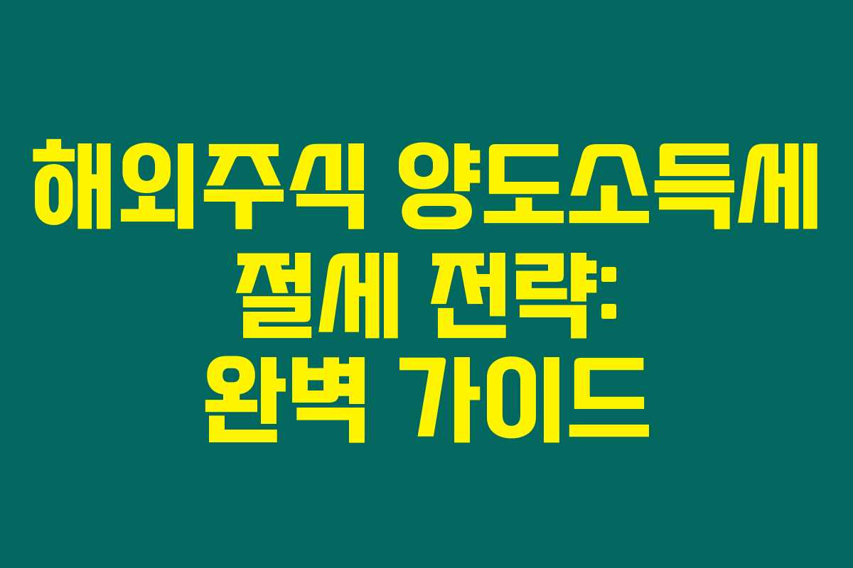 해외주식 양도소득세 절세 전략: 완벽 가이드