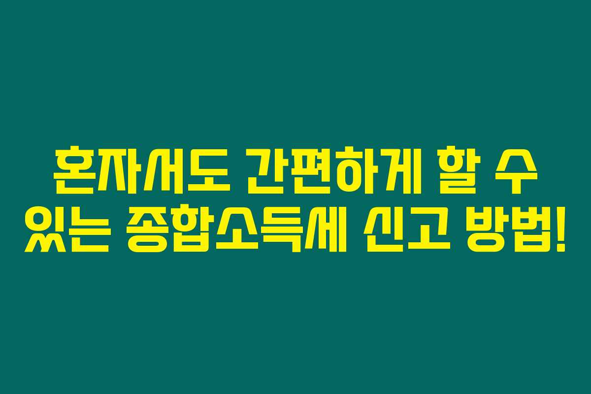 제가 직접 경험해본 결과로는 종합소득세는 매년 5월에 신고해야 하는 중요한 세금입니다. 많은 사람들이 혼자서 신고하는 것에 대해 어려움을 느끼곤 하는데요, 아래를 읽어보시면 종합소득세 신고를 혼자서도 쉽게 할 수 있는 방법에 대해 상세히 알려드릴게요.