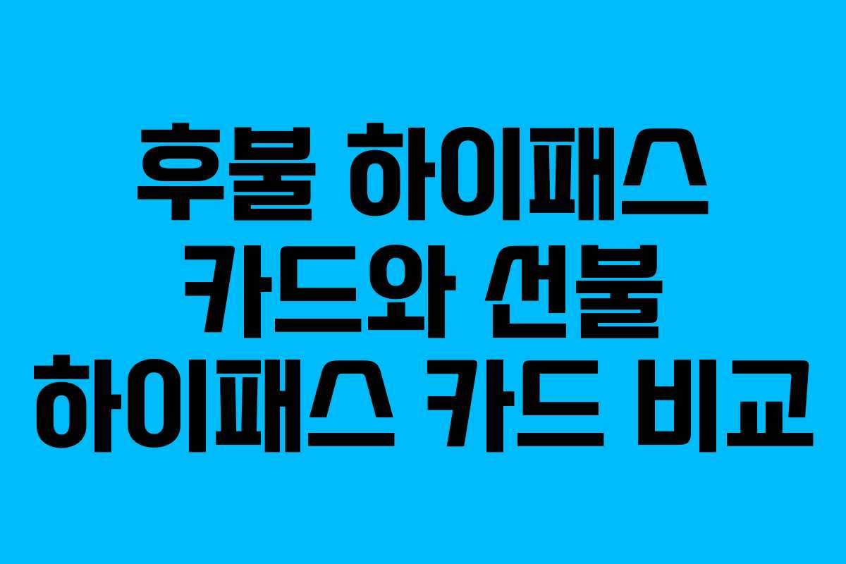 고속도로를 자주 이용하는 운전자라면 하이패스 카드는 필수 아이템입니다. 후불 하이패스 카드와 선불 하이패스 카드 중 어떤 것을 선택해야 할지 고민하시는 분들을 위해 두 카드의 특징과 장단점을 비교해보겠습니다.