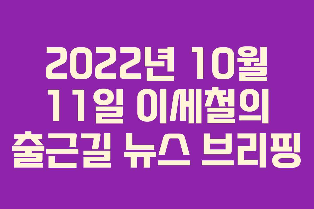 2022년 10월 11일, 이번 뉴스 브리핑에서는 정치, 정부, 경제, 사회 등 다양한 분야에서의 주요 이슈를 정리하였습니다.