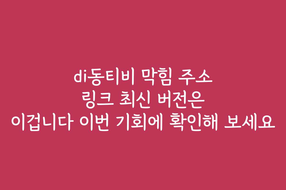 최신 di동티비 막힘 주소 링크 리뷰 및 추천