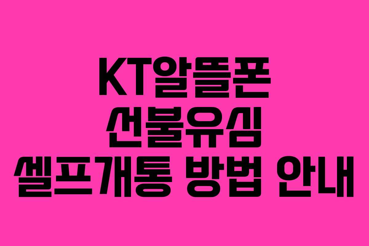 이 정보를 통해 KT알뜰폰의 셀프개통을 쉽게 진행하시길 바랍니다!