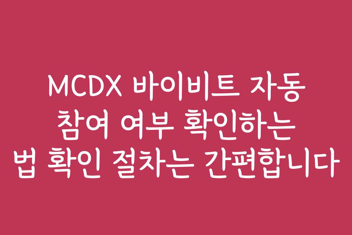 여기에서는 MCDX 바이비트의 자동 참여 여부를 쉽게 확인할 수 있는 절차를 단계별로 안내드립니다:
