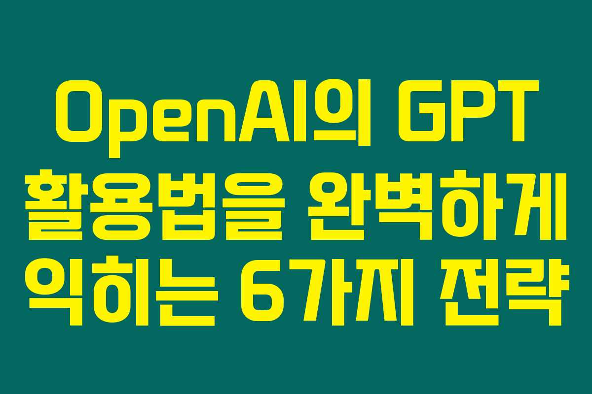 디스크립션은 텍스트로만 구성해줘. OpenAI의 GPT를 제대로 활용하기 위해 알아두어야 할 6가지 전략을 상세히 알려드립니다. 제가 직접 경험해본 결과로는, 이러한 전략들이 실제로 여러분이 GPT를 사용할 때 큰 도움이 될 것입니다.
